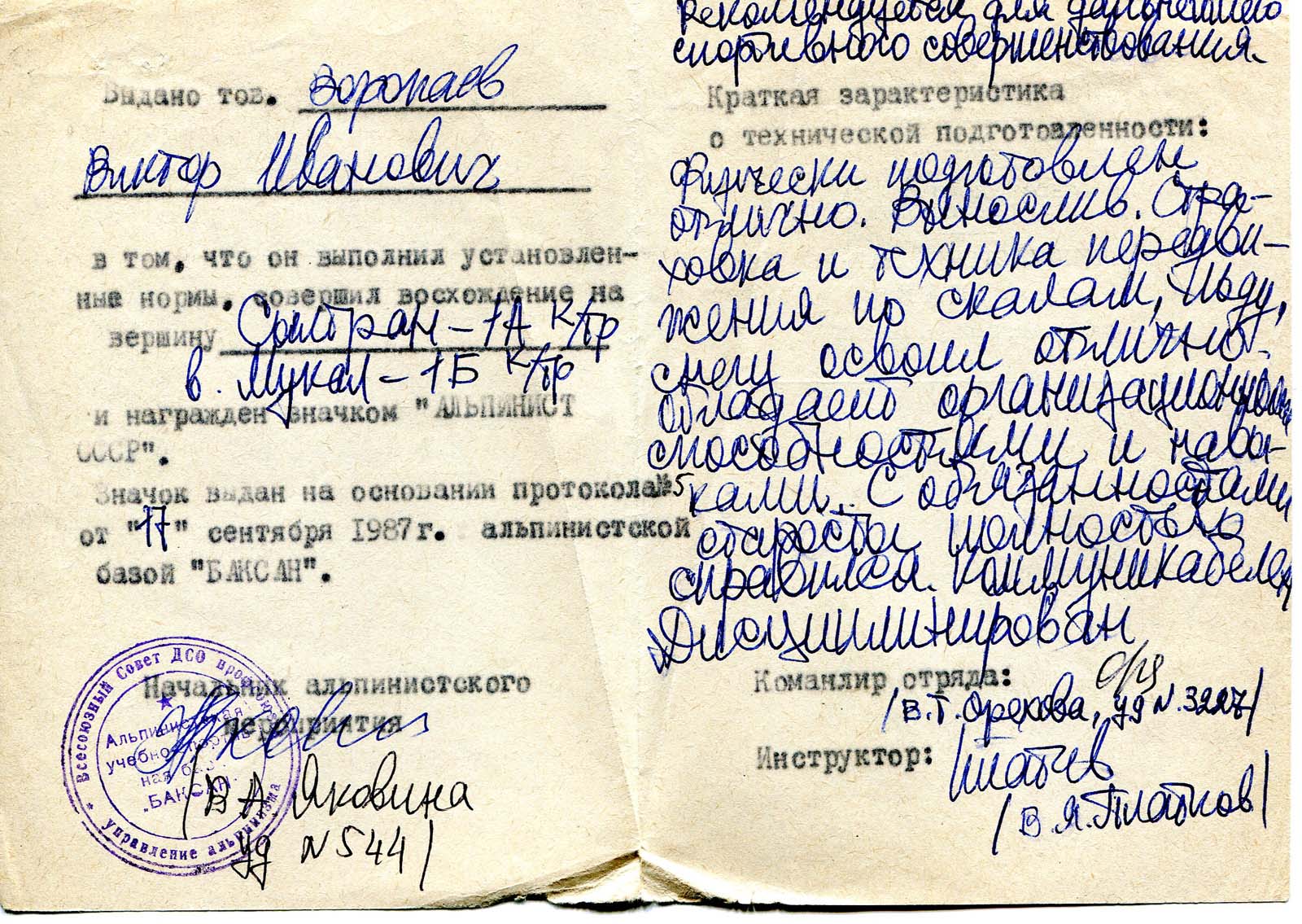 Скалолаз должен обладать волей к победе, крепкими нервами, хорошим сердцем и цепкими пальцами на сильных руках. Смелость и осторожность - закон альпиниста. Знание и расчет своих сил, сообразительность и трезвая оценка момента - залог безаварийного восхождения. Лазание наавось лишь ведет к катастрофе.
