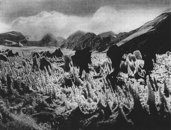 Альпинизм становился в Советской стране подлинной школой мужества, в которой проходили суровую, но увлекательную учебу тысячи молодых людей. Уже в 1930 г. на Эльбрус поднялось 46 советских альпинистов. Теперь эта цифра кажется ничтожной. Но достаточно сопоставить с этим статистику восхождений на Эльбрус после Фрешфильда, - в среднем меньше чем по одному человеку в год, - чтобы понять значительность этой цифры.