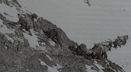1936 год. Группа из пяти альпинистов: Евгений Абалаков (это была его первая экспедиция в роли руководителя), его швейцарский друг Лоренц Саладин, Леонид Гутман, Виталий Абалаков и Михаил Дадиомов, без рекламного шума готовилась к восхождению на Хан-Тенгри - 6995 м. (Ц. Тянь-Шань). Для подготовки они едут в Узбекистан, где опять работают с геологами на Туркестанском хребте. После ряда приключений, форсированным 150-км маршем они добираются до подножья Хан-Тенгри. Наступает осень, термометр порой падает до минус 30°. Без акклиматизации они идут наверх, одежда и снаряжение у них – плохие. В качестве базового лагеря оставляется палатка, немного продуктов и одежды. Каждый день становится холоднее. Ночи в снежных пещерах отбирают силы. Они игнорируют все предупреждения, посылаемые им природой и идут все выше. День штурма вершины заканчивается фиаско. Они не доходят до высшей точки, но отказываются сдаться и начинать спуск. В крошечной снежной пещере на высоте 6800 м. организуют холодную ночевку без какого-либо снаряжения и воды. На следующий день, не чувствуя рук и ног, они поднимаются на вершину. На спуске их застает снежная буря. В какой-то момент они теряют веревку, но видят ее, зацепившуюся ниже. Евгений, рискуя жизнью, спускается к ней и приносит обратно. Через 200 м. на скалах срывается Гутман и остается лежать неподвижно, но он еще жив. Обессиленные восходители упаковав, спускают его вниз по склону. Приходится организовывать вторую холодную ночевку. Наконец, группа добралась до базового лагеря. У Виталия отморожены пальцы рук и ног. Тяжелые поражения у Лоренца Саладина. Он обрабатывает их ножом и пропитывает керосином – начинается заражение крови. Теперь с каждым днем у него повышается температура и на пути назад он падает с лошади и умирает в долине Инылчек. Евгений – единственный совсем не имеет травм.