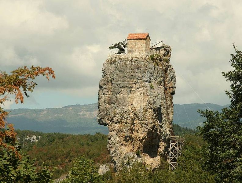 Кацхийский Столп — крупный известняковый монолит, высотой в 40 метров над землёй у реки Катскхура, правого притока Квирилы. В посёлке Кацхи, западной части региона Грузии — Имеретии. Недалеко от города Чиатура. Первые записи о Столпе Кацхи и возведённом на нём Храме упоминаются в записях грузинского принца Вахушти Багратиони.«Я увидел скалу в ущелье, настолько высокую и узкую, прямо как столб, а на скале стояло некое сооружение и никто не в состоянии подняться туда, даже я не понимаю как это сделать».