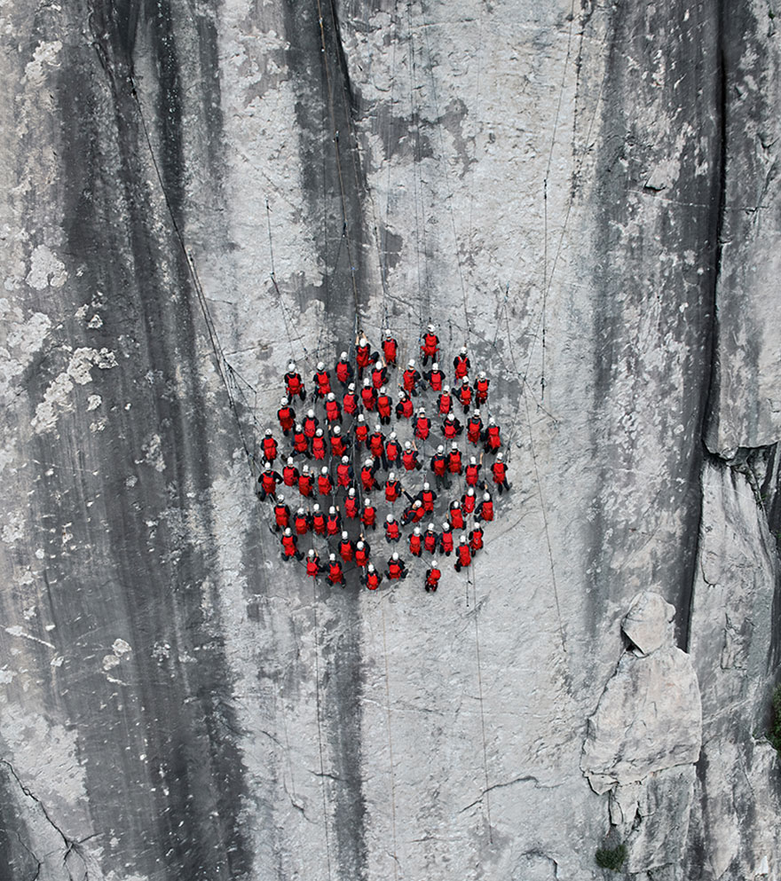 Швейцарская компания по производству снаряжения для альпинизма, скалолазания и активного отдыха "Mammut" обратилась к известному фотографу Роберту Бошу с просьбой сделать особую фотографию, которая будет использоваться в рекламной компании бренда в 2015-ом году и будет посвящена 150-летию первого восхождения на гору Маттерхорн (Альпы, Швейцария, высота 4478 метров), совершённого командой английского художника, альпиниста и исследователя Эдварда Уимпера в 1865 году. Альпинисты поднялись на горный хребет Hörnli и по маршруту восхождения команды Уимпера зажгли красные огни.