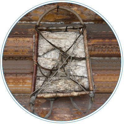 "В описаниях снаряжения путников конца XIX - начала XX вв. упоминаются разные средства переноски. На палке, перекинутой через плечо, носили узлы, котомки, запасные сапоги, лапти, иногда котелок или чайник. За спиной - вещевой мешок, шалгач (арханг. рюкзак), берестяной короб (в наши дни на Русском Севере его заменяет жестяной), крошни (приспособление из прутьев и веревочек, к которым крепилась охотничья добыча). Через плечо, на боку висела сума, в руках держали разного рода сумки и корзинки.
