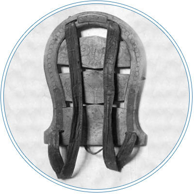 Рамы из деревянных прутьев стянутые ремнями поверх уложенных вещей и крепящиеся к спине лямками.
