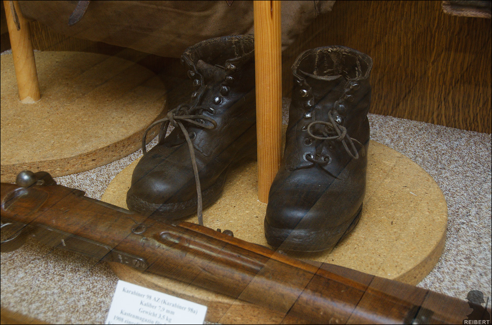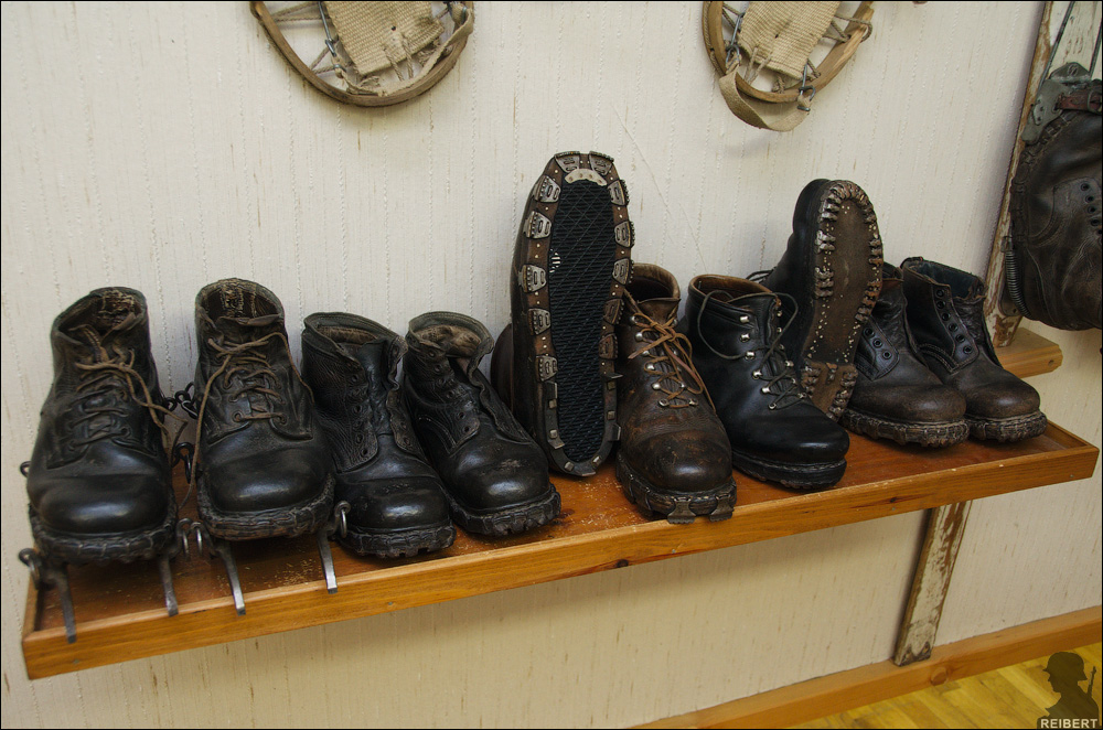 Особый интерес представляют скалолазные тапочки периода 2МВ (помним о советских галошах 1970-х гг.), туристические рюкзаки и рюкзаки горных егерей 1МВ-2МВ (можно сравнить с Абалаковским рюкзаком 1950-х).