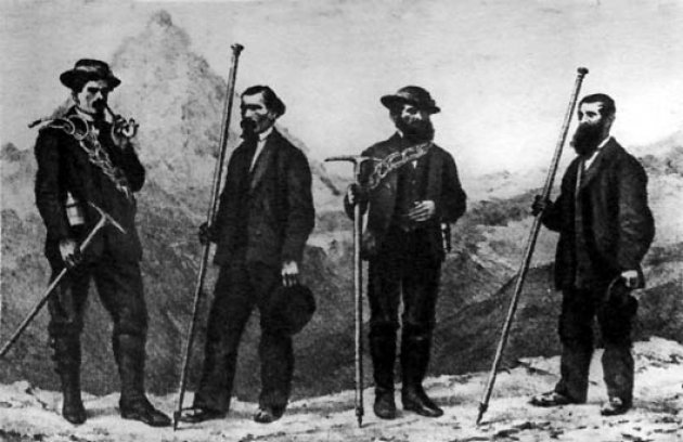 Выдающимся достижением этого периода в мировом альпинизме принято считать покорение англичанами во главе с Уимпером Маттерхорна ( пожалуй, всем знакома эта пирамидальная вершина, украшающая обёртки шоколада!). Победа была омрачена гибелью четырех из семи восходителей, но это восхождение открыло эру подлинно спортивного альпинизма.