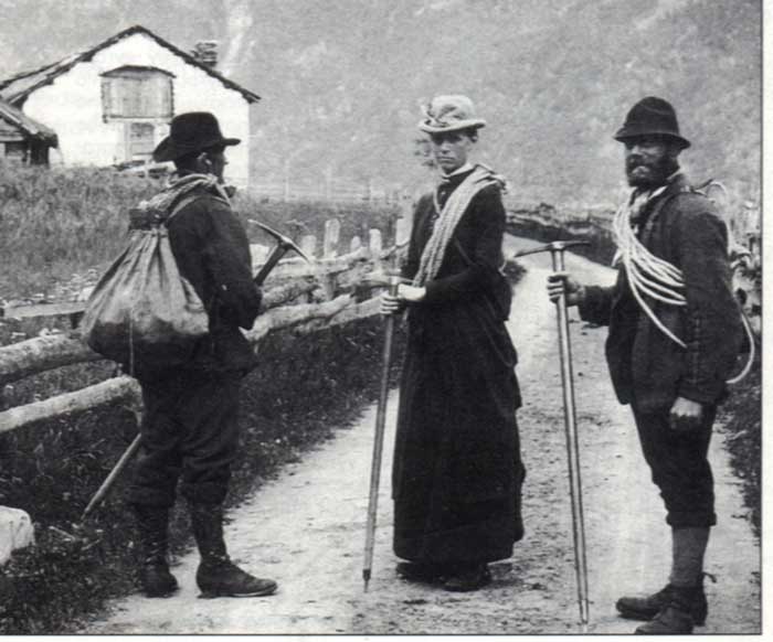 Говорят, что некоторые мужья в конце XIX века опасались оставлять жен даже на время восхождений. И брали с собой. Это были красивые альпинистки, такие как Хермина Таушер, Май Норман-Неруда, Розе Фридман... Они долгое время ходили с мужьями в горы, потом постепенно начинали ходить уже с не мужьями. Были, наверное, и такие, кто ходил в горы в поисках мужа. Впрочем, многие альпинистки того времени были ярыми феминистками и замуж не выходили принципиально.