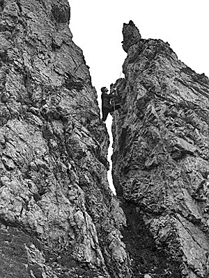 Если мы заходили слишком далеко в нашем воображении, то мы также начинали напрягать и наши ограничения на этот день, связанные с безопасностью. После того, как были собраны несколько камней побольше для захоронения (нелегкая работа в этом месте, где большие камни несутся со скоростью 60 миль в час (96.5км/час -С.К.)), Энди прочел прощальные слова, взятые с задней стены церкви в Бристоле (Британия), и мы вновь надели наши рюкзаки.