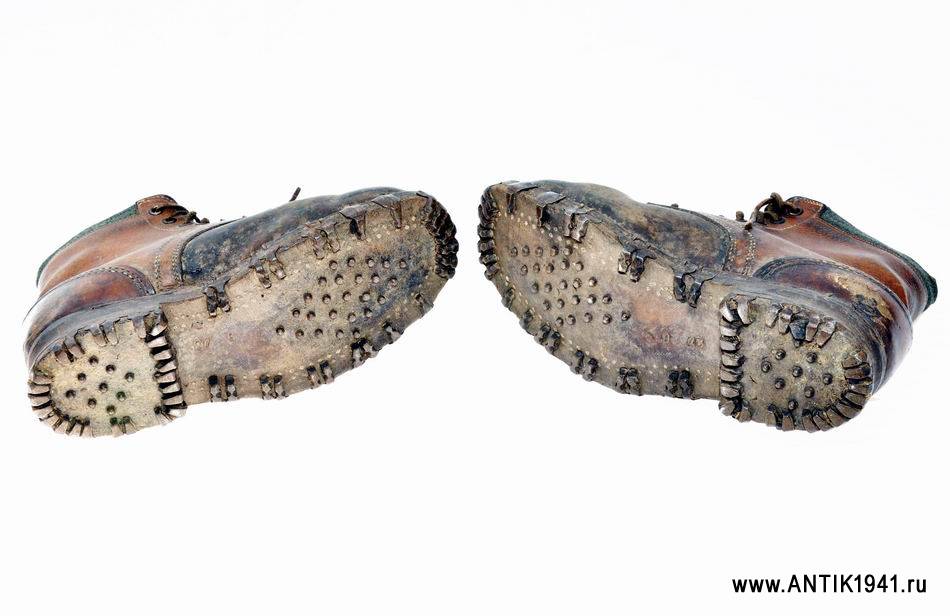Ещё французский аукцион. Там много прочего снаряжения для военных и альпинистов, включая пояса, фляги, рюкзаки, обувь, офицерские кожаные поножи и даже бахилы на ноги (!).
