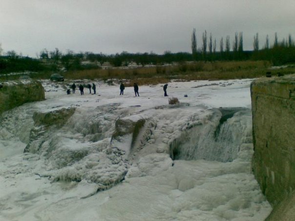 Обратите внимание на фото: тогда стоял сильный мороз (тоже рубеж января-февраля), но дамба ПОЛНОСТЬЮ не замерзала. Лёд по краям, много брызг, а сам поток воды льдом не скрыт. Если затянет под лёд, звоните 911.