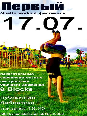 Первый Ghetto workout фестиваль в Ростове-на-Дону состоится 17.07 рядом с Публичной библиотекой (пока условное время начала 18.30..)