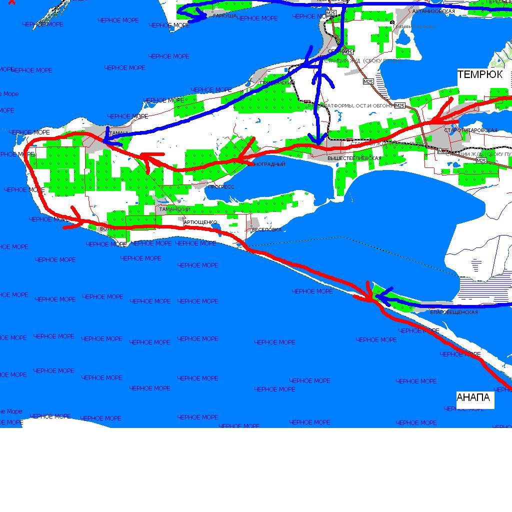 вообще хотелось проехать один цельный кольцевой маршрут: Темрюк-Голубицкая-Ахтанизовская-Сенной-Тамань-Волна-Бугасская коса - Витязево (Анапа)-Джигинка-Темрюк.