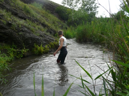 Так-же собираемся в каньон спуститься ,только в конце июля. А пока испываем гидрачи, неопреновые ботинки и носки. Кстати под Красным Сулином есть вот такой живописный мини каньончик с каменистым дном.