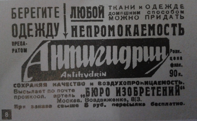 Alexey65, исправляюсь: водоотталкивающая пропитка 1920 года :)