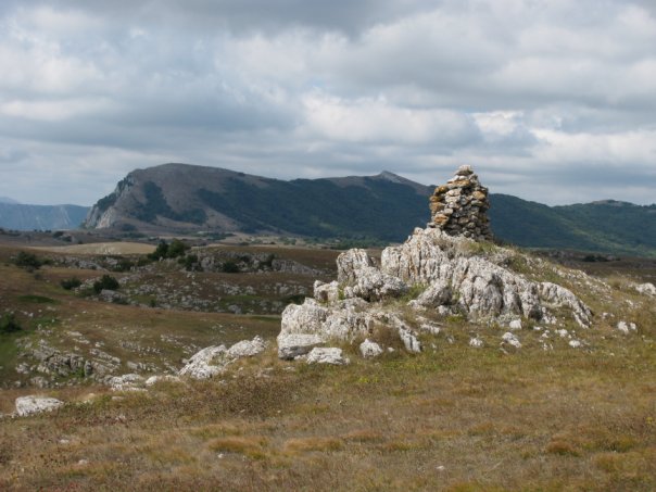 На этом плато находится самая глубокая пещера Крыма "Солдатская", кс - 4Б.глубина- 517м. и в мае там народууууууууу, сплошные сборы.