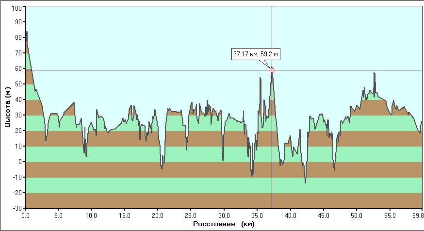 Около сорока... но было процентов 5 по описанию "лесной дорожки с лужами", а в реале аццких говен выше втулки с тучами слепней и комаров, по которым велы пёрли на себе. Репелленты спасали, но частично. Кроме того, частная собственность в Подмосковье в моде - оз. Рыбхоз слева по красивому сказочному лесу обогнуть не получилось - уперлись в ворота и забор - пришлось огибать его с другой стороны и возвращаться на маршрут по трассе Е107, на которой почти нет отбортовки - ещё почти 4 км жести. Но озеро в Минино и посуда из Гжели нас порадовали - впечатлений куча.