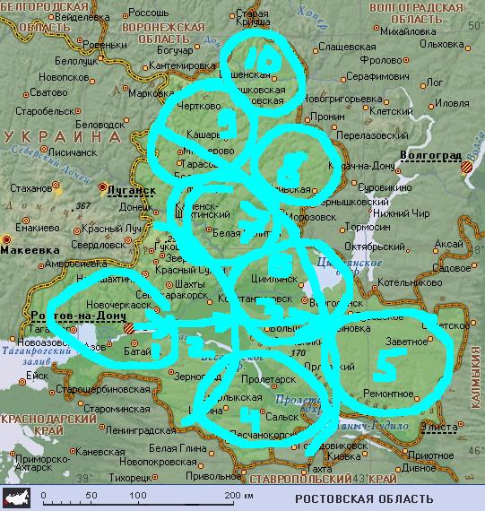 3. Ростовский R=200км (4-х и более дневки). Линия Тарасовский-Морозовск-Зимовники