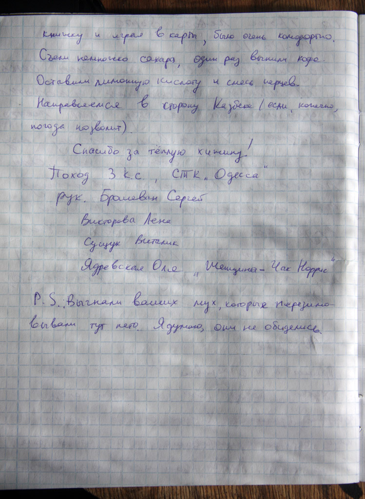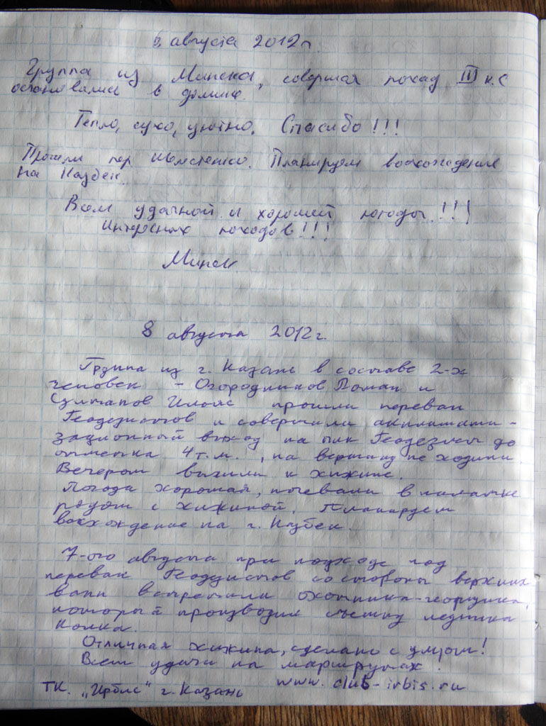 По поводу "Глобуса": "Глобус" создавали в КПИ, как кочующий лагерь. В 1964-м базировался в Домбае, в 1965-м в Баксане, в 1966-м в Аксауте. Начиная с 1967 года "осел" навечно в Учкулане, на поляне Кёртмели. Где существует и поныне. Уже не принадлежит КПИ, управляется семьёй местных карачаев. Пожилой отец, лет 70 от роду, и две его дочери с семьями. Территория ухожена, домики отремонтированы, аккуратные. 2-4-х местные комнаты. В этом году стоимость проживания в 4-х местном-200 р., в 2-х-250. Стоянка а/машины, сутки-150. Если живёте в лагере, за машину плата не берётся. Есть баня, тогда и горячая вода. Плата отдельная. Есть душ, бесплатный, но и без горячей воды. Бодрит... Туалет на территории, хуже, чем на самом захудалом ж.д. вокзале. Есть кухня, с газовой плитой, на которой можно готовить. Плату за неё не брали. По заказу хозяйка готовит хычины (картошка с сыром нам досталась), цена 1 шт. 60 р. Есть магазинчик. Цены дороже, чем в населённом пункте, но терпимые. Помимо обычных печенья-пряников, сникерсов-конфет, пива-напитков, есть товары местного "производства": сыр, молоко, айран.