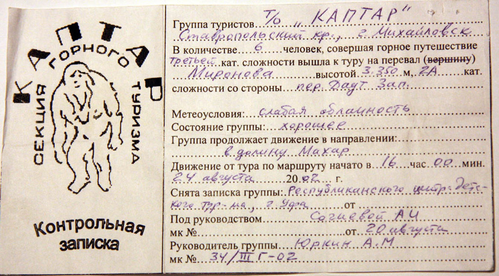 По поводу Саламандры, из "Глобуса" в 68-м, послали группу разведать пути спуска с Даута, оценить со стороны. Руководитель Непорожний Геннадий Иванович. Они вышли на эту седловину, и нашли записку 11-ти летней давности. Москвичи, студенты. Сборная группа из разных ВУЗов. Седловина без названия. Стали придумывать, и использовали фамилию кого-то из этой записки, редкую по тем временам. Так и появилась "Саламандра". Событие "отметили" в стенгазете в "Глобусе". После чего прокатилась волна первопрохождений в том районе. Предположительно Борис Орешник (инструктор, напомню, "Глобус" работал по принципу альплагеря, путёвка, сборы, тренировки, тренировочные выходы на кольцевые маршруты) во главе женской группы, сделали первопроходы перевалов Женский, Домашний, Уютный, Девичий, на окончании Махарского отрога.