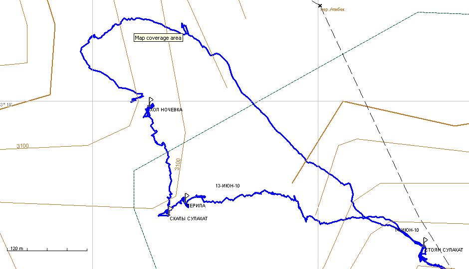 Прилагаю рисунки с жпс. как видно до вершины 3600 мы не дошли. А перевал Сулахат 3170 по прибору.