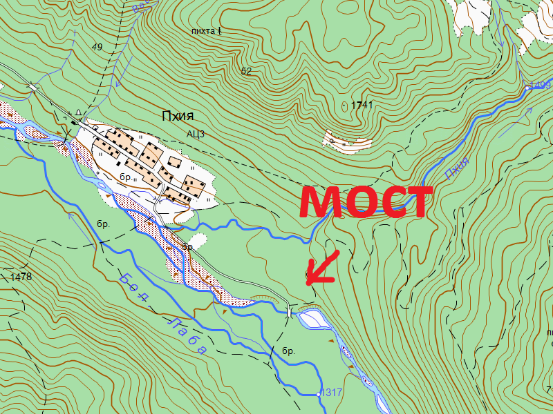 По поводу моста, через Лабу - В Яндекс фотках у меня выложена карта, если в полном разрешении посмотреть, то там обозначен мост чуть выше по течению от Пхии.