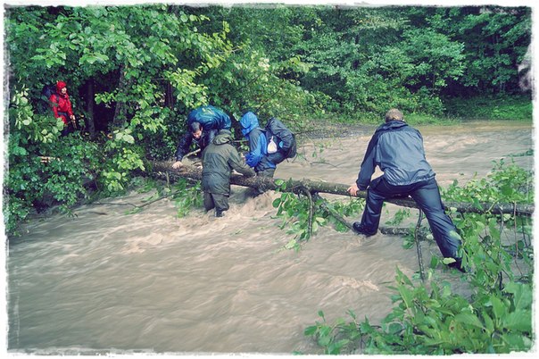 Надо было сразу, как начался серьезный дождь, убрать фотоаппарат в рюкзак. Тогда хоть обратную переправу смог бы снять.