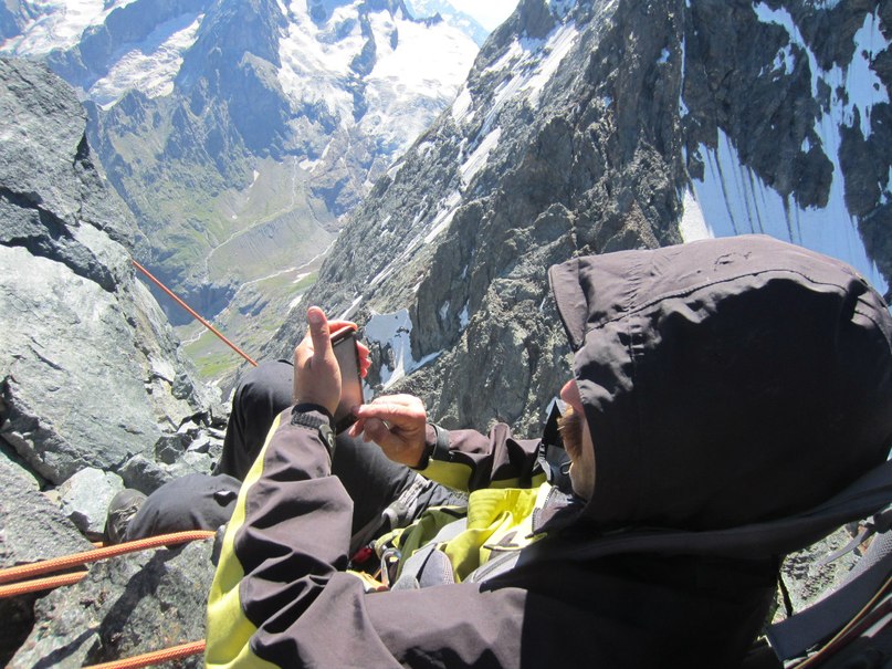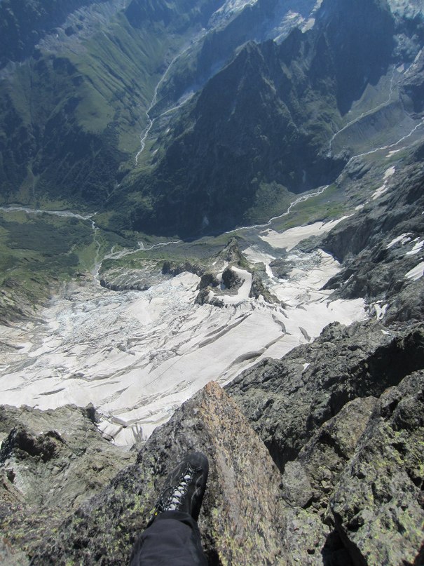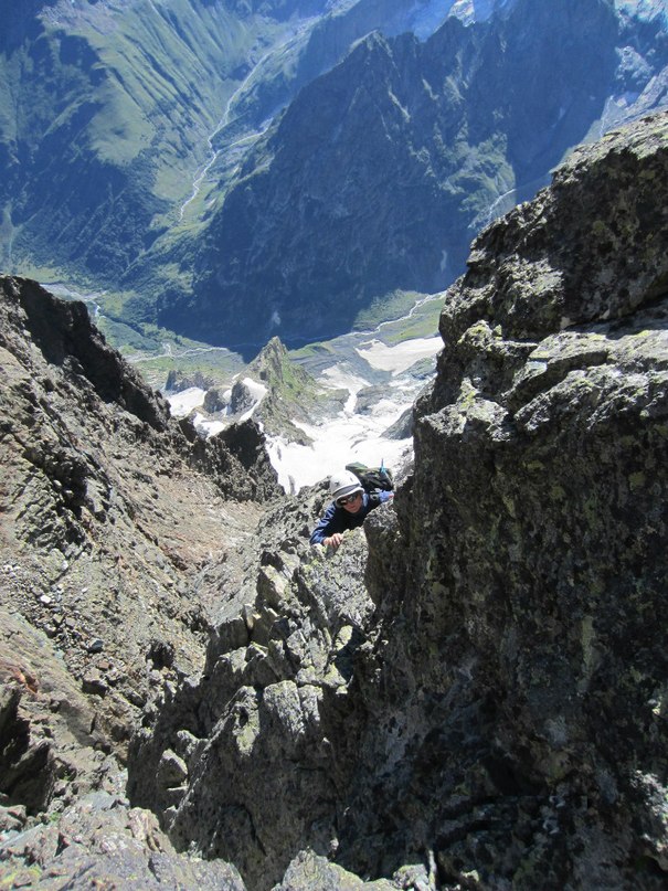 На первый день по маршруту Домбай-Ульген Малый 2б заблудились на пару верёвок. Зато во второй день поднялись на вершину по маршруту 2а. Это было потрясающе! Спустились в лагерь к середине дня, а вечером уже были в Домбае и ели в кафешке мясо по-французски, запивая его томатным соком.