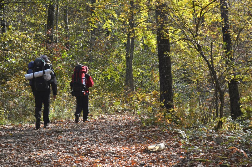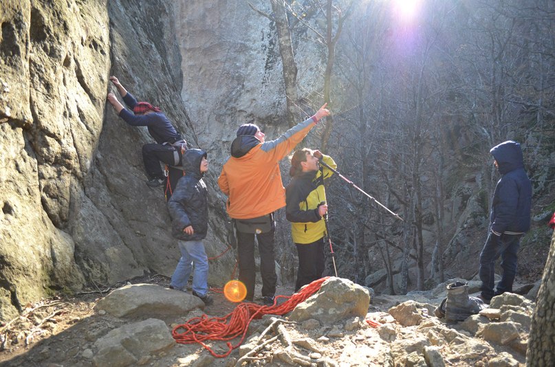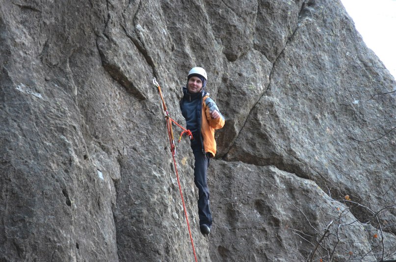 Прошли с Олегом простые скалолазные маршруты, и вчетвером залезли на Бегунки в две верёвки...