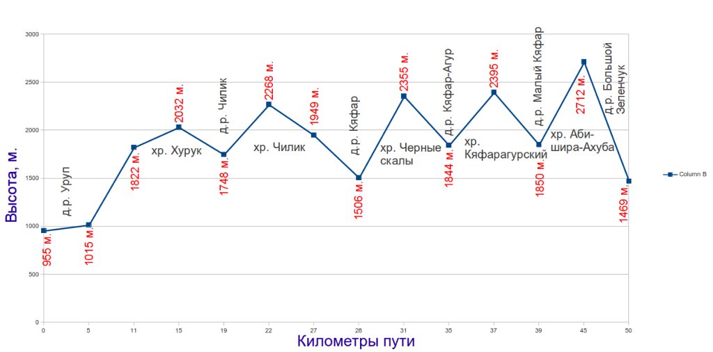 nickita писал(а):пос. Уруп-м.сл. р.Уруп и р. Бульварка-хр. Хурук-хр. Толстый-д.р. Чилик-хр. Чилик-д.р.Кызылчук(Кяфар) - х.р. Ингур в р-не Рассыпного бугра или пер. Ильясова -д.р. Кяфар-Агру - промежуточная седловина в хр. Кяфарагруский (Перевал Двойной,2400 м.?) -д.р. Малый Кяфар -пер. Пионер - пос. Архыз (~50км.)