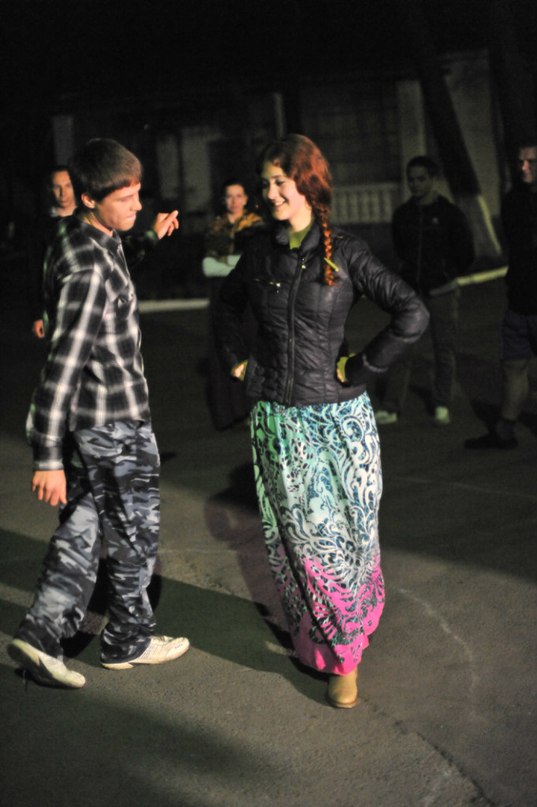 4) ВЕЧЁРКИ для взрослых и ВЕЧЁРОЧКИ для детей. Организовывал Арсений из Ставрополя (Ставропольская фольклорно-этнографическая группа "Вечёрка": http://vk.com/st_vecherka), и ему отдельное уважение за деятельность которую он ведёт. Продвигает русские традиции. Для девушек особенно привлекательны были танцы, для парней - молодецкие забавы. Всё под гармонь, очень здорово! Были массовые жёсткие игры, разные испытания, элементы бузы, хлестали друг друга нагайками в полную силу, и я наглядно убедился в том, что донская нагайка (с кольцом у рукояти) круче кубанской.