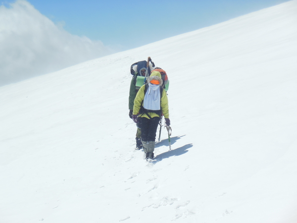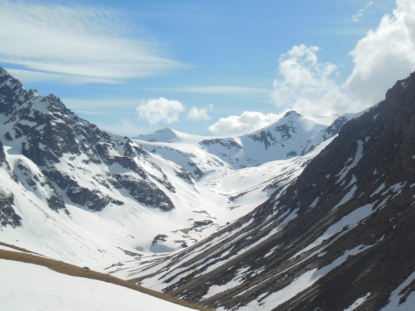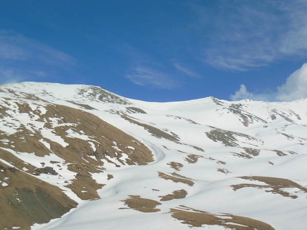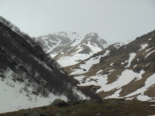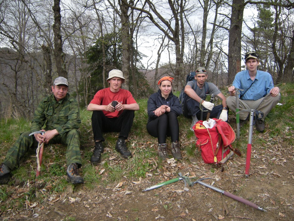 5 мая вернулись из Арыхза. Таким образом закончился спортивный поход из пос. Уруп в пос. Архыз через два горных перевала. Попытка пройти по этому маршруту предпринимались не раз, но в этот раз повезло с погодой - не весь снег перешел в водно-газообразную фазу, дождей почти не было, а снега было достаточно. В первый день доехали до ст. Преградной Тебердинским автобусом, а от Преградной местным автобусом до пос. Уруп, он ходит каждые 20 мин. и останавливается в Медногорском и около горнодобывающего комбината выше пос. Уруп. По многочисленным рукавам перешли р. Бульварка и с перекрестия дорог уходящих в д.р. Бульварка и р. Уруп начали подъём на хр-т Хурук. На подъеме рюкзаки показались достаточно тяжелыми, шли долго, часам к пяти дошли до ручья пересекающий дорогу к Кошу - там пообедали а к шести-семи вечера траверсировали еще один бугор и оказались перед скалистой частью хр-та Хурк. Вечером проходящие мимо пограничники показали нам удобное место ночевки под скалой, но заночевали мы выше скалы, расчистив площадку ледорубами. Во второй день траверсировали хр. Хурук по тропе до красной скалы и до места его смыкания с хр. Толстый. Забрав по ходу движения вправо увидели долины р. Уруп и Малый Уруп, перевалили через низкую часть толстого хребта и вышли на дорогу траверсирующую его южный склон. По дороге дошли до Коша-автобуса и свернули к реке Чилик. От автобуса к Чилику спускается тропа, выводящая к броду выше небольшого острова. На другом берегу реки явно просматривается дорога, поднимающаяся к кошу на северном склоне хр-та Чилик и идущая дальше в д.р. Кызылчук (Кяфар) к домику лесного хозяйства. Перейдя Чилик в запасной обуви вышли на заснеженные поля хр. Чилик. После обеда у коша на дровах нашли две переваливающие хребет дороги - одна восточнее оканчивается на пастбище на отроге хребта, а вторая западная, выводящая непосредственно в долину и позволяющая пройти до сужения ущ. р. Кызылчук примерно 2км. ниже оз. Рыбное. Из за снега скрывающего дорогу и тумана, закрывающего д.р. Кызылчук заночевали на хребте. На утро спустились в д.р. Кызылчук (Кяфар) обнаружили красивый сосновый лес и домик лесного хозяйства. В этот же день дошли до первого орографически от оз. Рыбное правого ручья и начили подниматься к пер. Кумбиж северный (1А). Заночевали в нескольких переходах под перевалом на последней проталине в снежных полях. Вечером ходил на разведку, чтобы убедиться, что окружающие ближнии седловины не выводят в другое ущелье. Также протропил полпути под перевал. На утро поднялись почти под перевал и я опять пошёл на разведку. Видимый выход на перевал преграждал снежный карниз и я вышел на седловину, поднявшись на хребет. Вышли на перевал, турик с запиской не нашли и построили свой, заложив записку в бутылку от манной крупы. Спустились с перевала почти бегом по своим следам и остановились на дневной отдых в р-не верхних сосен в д.р. Кяфар-Агур. Видели следы по Кяфар-Агуру западному и людей и следы в д.р. Кяфар-Агур южный. Уходя с обеда в д.р. Кяфар-Агур восточный через снежный мост увидели палатку в р-не крупной осыпи. В этот же (четвертый день) подошли под пер. Церковный в д.р. Кяфар-Агур восточный, видели туров на Турьем плато. По ходу движения увидели следы идущие к оз. Запрудное. Старались их не терять, т.к. перевалы из этой долины реки я ещё не ходил. Заночевали на пос