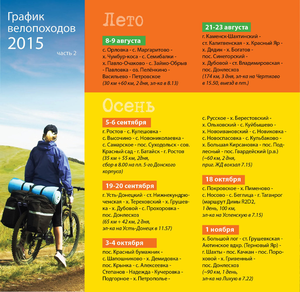 11. 21-23 августа г. Каменск-Шахтинский - ст. Калитвенская - х. Красный Яр - х. Дядин - х. Богатов - пос. Синегорский - х. Дубовой - ст. Владимировская - пос. Донлесхоз (174км., 3дня, эл-ка на Чертково в 15.50, выезд в пт.)