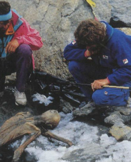 Голова и руки лежащего ничком, головой вверх по склону альпиниста были накрепко вморожены в холм из мелких камешков, накопившихся у тела за годы. Перевернуть его было невозможно. Даже просто подкопаться под него потребовало нескольких часов терпеливой работы ледорубами и карманными ножами. Срезая какую-то часть одежды, Джейк наткнулся на ярлык изготовителя, который мы отогнули и вытащили наружу, чтобы рассмотреть. Под тем ярлыком было аккуратно вышито: "Дж. Мэллори". Мы бросили все работы и уставились в лица друг друга... Однако, наши первые вопросы вертелись вокруг одного и того же: "Почему Эндрью Ирвайн носил рубашку Джорджа Мэллори?" В конце концов нас ударило: мы нашли не Ирвайна, мы нашли не "древнего мертвого англичанина" Ванга Хонг-бао. Мы стояли перед самим Джорджем Лейфом Мэллори. ЧЕЛОВЕК этой горы, иголка в стоге сена. Смелость и энергия Мэллори вызывали у нас благоговение... а сейчас мы прикасались к нему. И вдруг каждый из нас увидел мускулистые руки восходителя - после всех этих лет, Джордж Мэллори все еще имел внушительную фигуру.