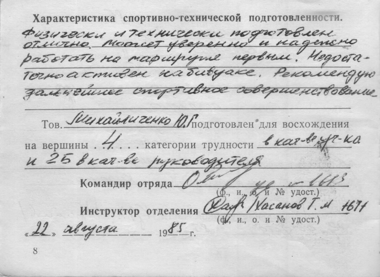 «Физически подготовлена слабо, развита хорошо, рекомендуется к завозу в альплагеря»