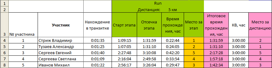 Бег - 21,1 км, КВ (общее) = 8часов 30 минут (отдельно 3 часа)