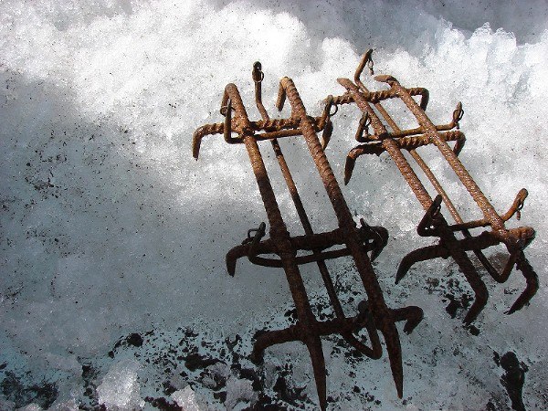 Две пары альпинистских "кошек", изготовленных в 1942 году для солдат, обнаружили во время экспедиции на Эльбрус юные кубанские казаки.