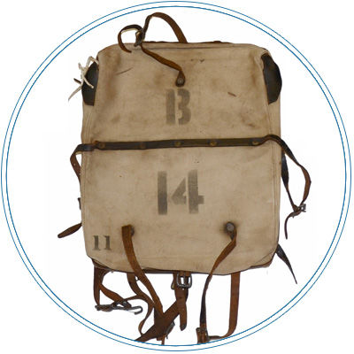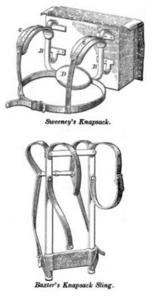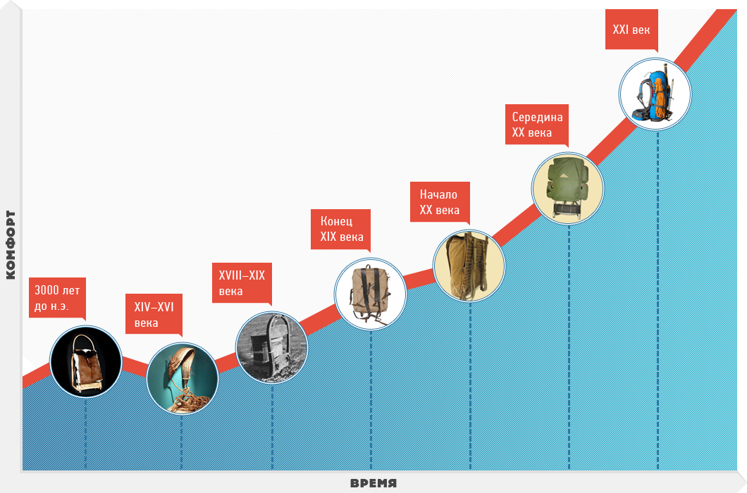 Логично предположить, что первым подобием такого рюкзака могли использовать самое совершенное на тот момент времени снаряжение - воинскую амуницию. А именно армейский ранец. Он имел небольшой литраж, освобождал руки, надёжно крепился к спине и предполагал подвеску необходимых вещей.
