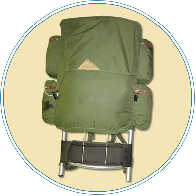 Рюкзак, как впрочем и другое брезентовое снаряжение, сильно промокал от дождя, прибавлял в весе и «вставал колом» после морозов. С абалаковским рюкзаком я проходил 5 лет. И только с появлением синтетических тканей, сшил себе «невесомый» рюкзак… белого цвета из технического капрона.