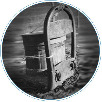 "В описаниях снаряжения путников конца XIX - начала XX вв. упоминаются разные средства переноски. На палке, перекинутой через плечо, носили узлы, котомки, запасные сапоги, лапти, иногда котелок или чайник. За спиной - вещевой мешок, шалгач (арханг. рюкзак), берестяной короб (в наши дни на Русском Севере его заменяет жестяной), крошни (приспособление из прутьев и веревочек, к которым крепилась охотничья добыча). Через плечо, на боку висела сума, в руках держали разного рода сумки и корзинки.