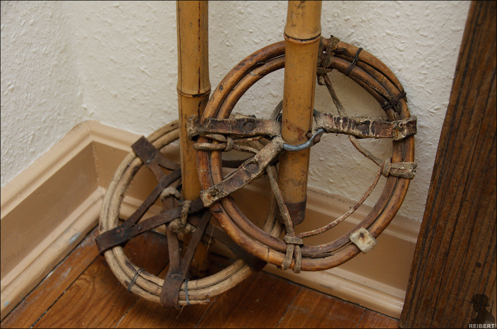 Рамы из деревянных прутьев стянутые ремнями поверх уложенных вещей и крепящиеся к спине лямками.