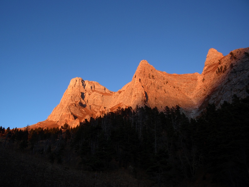 4 день. Собираемся, подходим к месту откуда надо лезть на Б.Тхач, бросаем вещи и часа 1,5-2 посвящаем вершине, потом спускаемся мимо ск.Крепость, по Бароновым полянам. Водой запасаемся под Крепостью. Ночевку лучше делать на Бароновых полянах(на Малых)