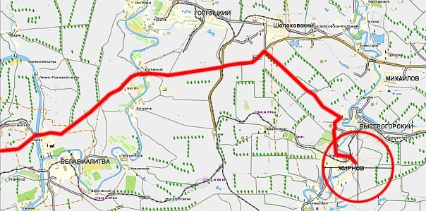 От Ростова-на-Дону до скал под Зайцевкой, если ехать по М-4 на север до поворота на Владимировку и далее через Садки, около 150 километров. GPS-трек от наблюдателя прикручен во встрече ВК.