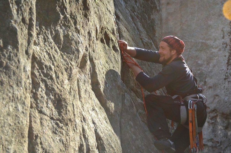 Прошли с Олегом простые скалолазные маршруты, и вчетвером залезли на Бегунки в две верёвки...