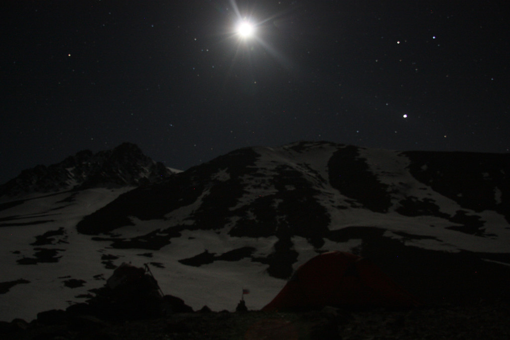 Хороший ракурс! Кстати, здесь хорошо виден путь подъёма на западное плато Эльбруса вдоль "утюга", и перевал Фрунзе (2-А; 4020).
