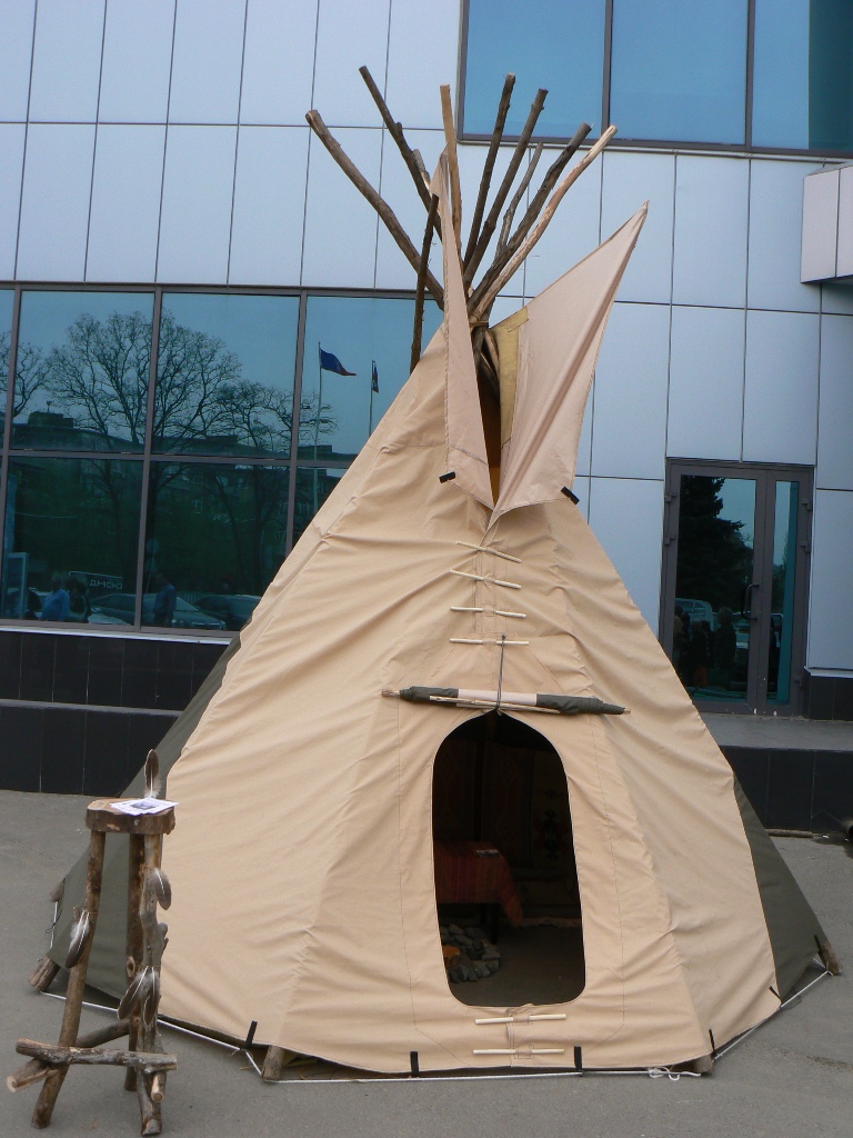 Типи поставлю на улице перед входом. В типи вход бесплатный.Так что кого интересует вопрос,приходите-пообщаемся.Собственно,ради этого и ставлю. Правда,для охотников и рыболовов поставлю не из парусины а из окс форда,высотой 3.5м походно-туристическую. Найти меня можно будет по индейскому прикиду.А если убежал греться в глубины "Вертол-экспо",то вызвонить 8 903 474 5640.